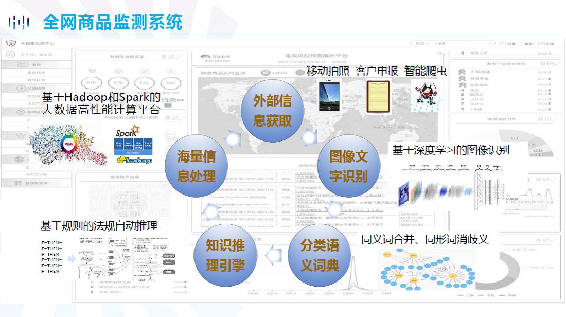 该平台借助区块链、大数据和人工智能技术,通过面向出入境查验的风险预警与可信溯源关键技术与系统,形成智慧口岸区块链及风险预警平�,涉及电商信用、风险防控、金融服务、智慧物流、统计监测、信息共享等方面,并聚焦于赋能大宗商品供应链等领域。平台的主要核心技术和内容见图2-�8�