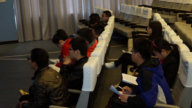 首先,航运管理部经理丁先生以VCR形式向在座的同学们介绍了华海国际以及日照城市的发展,并且播放了同样毕业于上海海事大学的公司总经理的鼓励视频。接下来,丁先生向同学们介绍了公司的具体情况以及发展前景,并表明公司正处于发展阶段,需要大量人才。最后,丁先生又详细介绍了公司员工福利等同学们非常关注的问题。
