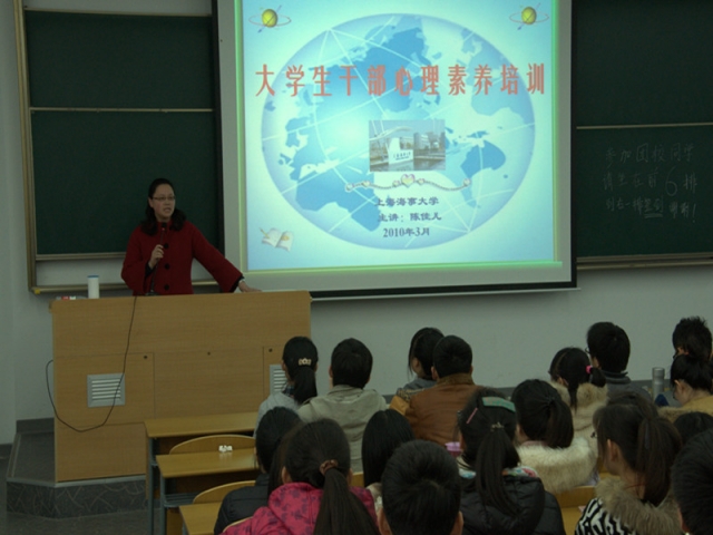衔接上次团校课上认识自我的主题,这次的团校课程的主题是心理健康教育与培养无私奉献精神。团校开始后,经主持团校的黄大为同学的介绍,陈佳儿老师就心理健康教育这一主题展开了她的课程。陈老师以丰富详实的PPT材料为主,以生动有趣的现实材料为辅,着重为同学们讲解了在大学学习生活中会面对的困难与随之而来的心理问题,并一一加以讲解,教授同学们对策。同学们都对这些贴合实际的问题非常有兴趣,认真聆听,不时做一些笔记。随后,又由刘博同学着重讲解了培养无私奉献精神的相关内容。刘博同学的讲解很好的结合了自身的事迹,诉说了公益活动给他带来的人格升华与处事感悟。团校最终在同学们热烈而持久的掌声中结束。