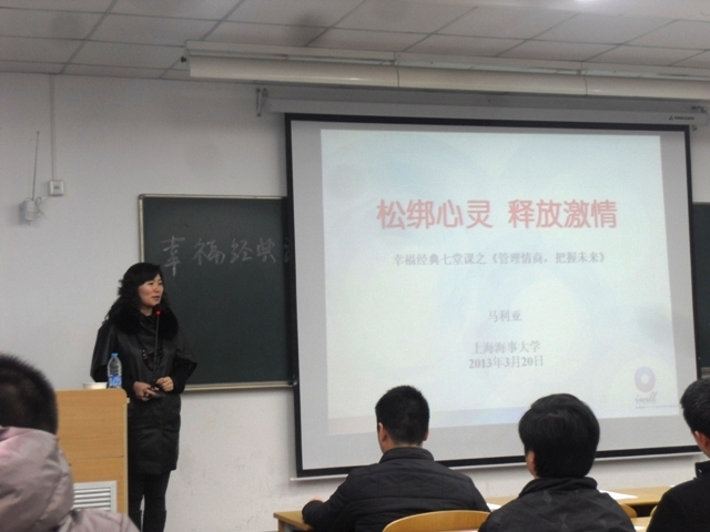 2013年3月29日,我院特邀美国ACI国际注册心理咨询专家、中国幸福心理学专家、青年创业导师、现任爱唯尔iwill(上海)企业发展有限公司CEO马利亚老师主讲《管理情商,把握未来》专题讲座。伟德betvictor 全体心理委员以及心理知识爱好者130余人参加了本次讲座。