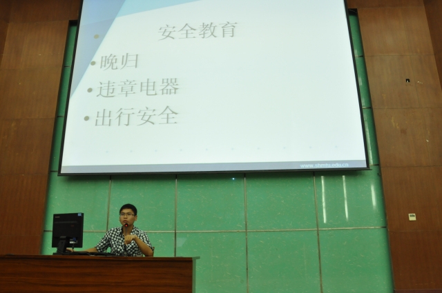 2013年10月7日晚,为了帮助刚踏入校园的13级新生能更好的了解校纪校规,提高他们的安全防范意识,增强他们的自我保护能力。交运伟德betvictor 管理系辅导员徐晓毅特意在帮建报告厅为管理系新生作了一场以“校园安全行,从点滴做起”为主题的安全教育指导。