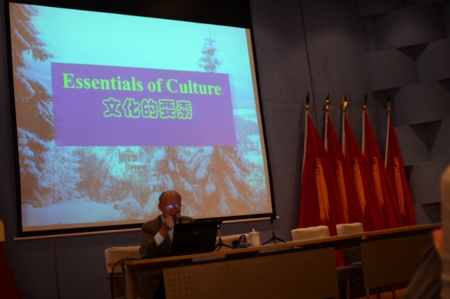 讲座一共分三部分。首先左彪老师阐述了文化的定义、要素、特征和层次,并从这一角度分析了中西文化的差异,提出了线性与环形的思维差异。接着左彪老师具体从学术、医学、艺术、餐饮等几方面讲解了行为差异。最后左彪老师通过对西方哲学与东方哲学历史进程详细的阐述,解释了线性与环形的思维特征和其利弊处。整场讲座以英语为主,气氛活跃。