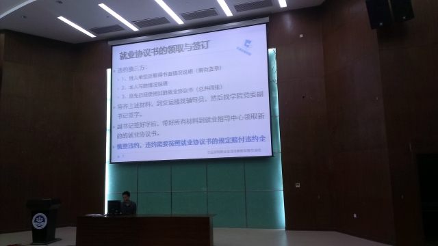 首先,郝老师向2014届毕业生介绍了伟德betvictor 2013届毕业生的就业总体情况,用数据让同学们清楚的认识到就业存在的压力和挑战。接着,郝老师向同学们着重介绍了本科生就业的相关流程和政策,包括就业协议书重要性、报到证的作用和办理、毕业户籍迁移及落户政策、毕业生档案等几个方面的问题。最后,郝老师强调了毕业生在就业求职过程中应该注意的问题,包括简历制作、衣着和言行等方面的问题,希望所有毕业生能找到一个满意的工作。
