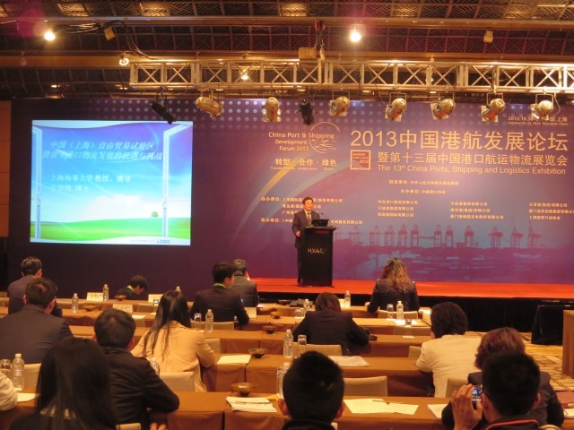 以“转型、合作、绿色”为主题的2013中国港航发展论坛暨第十三届中国港口航运物流展览会于2013年10月30日至31日在上海金茂君悦大酒店举行。原交通运输部副部长徐祖远和港航相关单位领导、专家出席此次论坛,伟德Betvictor(中文版)APP下载 教授王学锋老师作了主题为“上海自贸区港航负面清单”的精彩演讲,伟德betvictor 一百多名研究生参加了此次论坛。