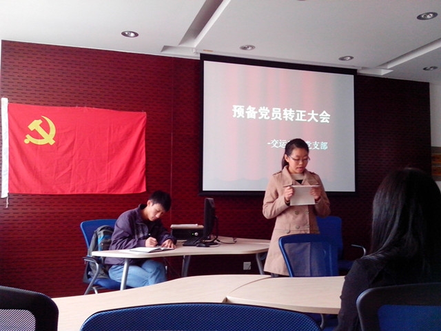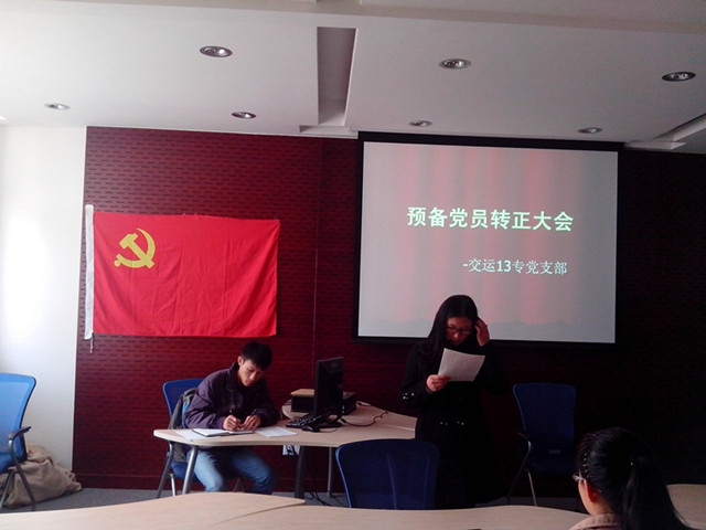 12月4日下午14:00,伟德betvictor 交运13级专党支部在交运楼217召开了丁文娟、李新两位预备党员的转正大会。会议由樊云然同学主持,党支部成员出席了本次会议。