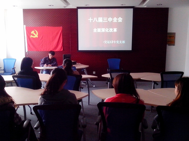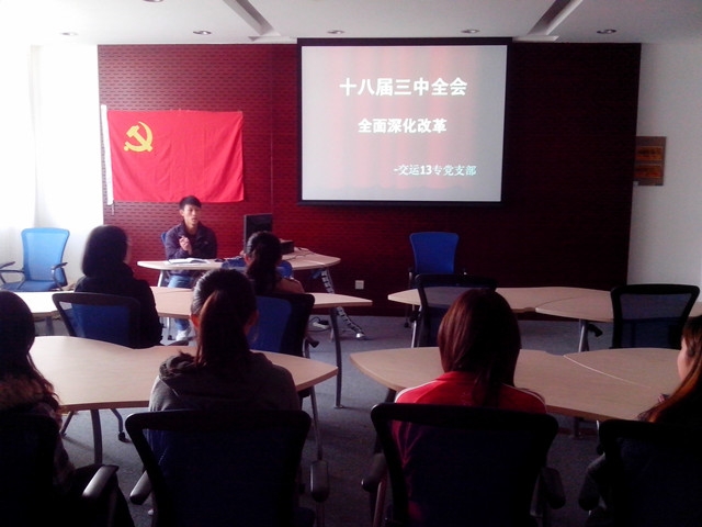 12月4日下午14:00,伟德betvictor 交运13级专党支部在交运楼217召开了“学习十八届三中全会全面深化改革”的组织生活会。 活动由樊云然同学主持,党支部成员出席了本次活动。