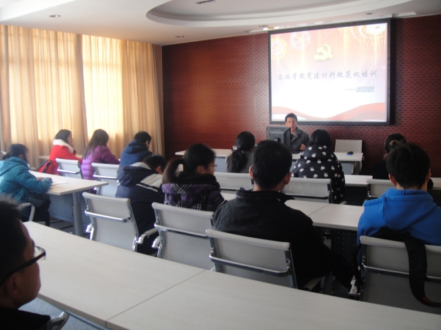 为提高学生党支部书记、支部委员政治理论素质,进一步做好学生党员发展工作,交运伟德betvictor 于2013年12月11日下午13:30在交运楼213开展了一场党建材料规范化培训会,对支部书记和支部委员进行党建材料规范化方面的培训。