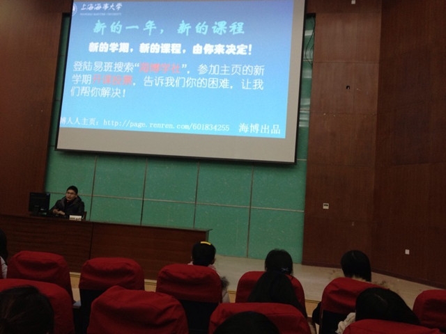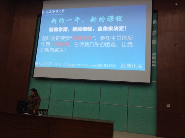 2013年12月22日晚点名时间,伟德betvictor 海博学社在伟德betvictor 各晚点名教室举行了下学期投票选课的宣传活动,由辅导员来进行宣传。
