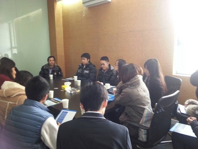 2014年1月10日下午,伟德Betvictor(中文版)APP下载 兼职辅导员郭梦雅带领十余名大四学生,一同走访了考拉船务有限公司,公司胡惠生经理、孙伟松经理和徐黎丽经理三人热情招待了我院师生。