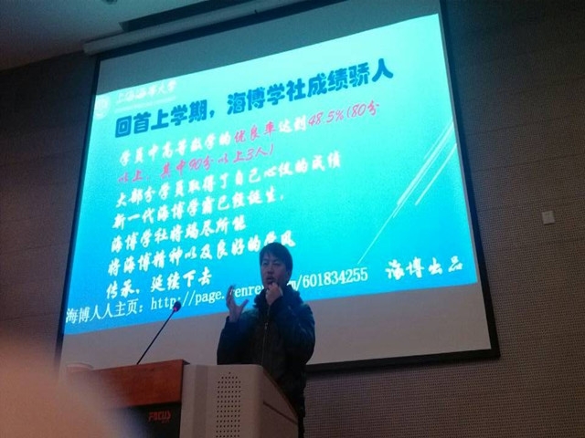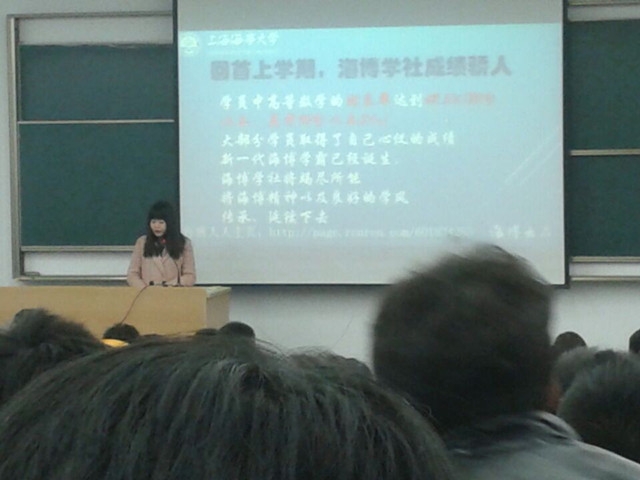 2014年3月2日,在交运伟德betvictor 大一、大二年级的晚点名活动上,海博学社对即将开展的课程进行了宣传。本次活动主要由指导老师朱红红老师组织,海博学社各部门负责协助。