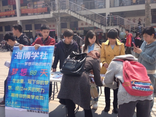 2014年3月18日中午,伟德betvictor 海博学社在北广举行了一次梦想八十八天活动。本次活动旨在帮助同学们找回追寻梦想的活力与激情,发扬海博努力追梦精神,让更多的同学完成自己的梦想,达到自己的目标。