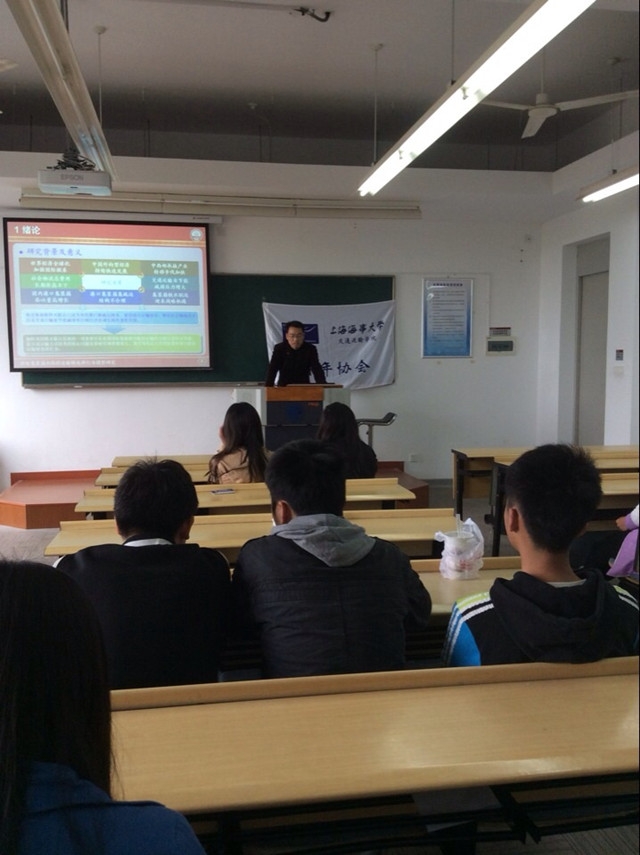讲座伊始,陶学宗老师首先进行了自我介绍。然后以丰富而鲜活的例子,向同学们介绍了有关际集装箱内路段运输链选择行为模型研究的六个方面,包括Nested-Logit模型介绍,多种运输方式利弊介绍,以及多属性决策模型等。期间陶学宗老师每介绍完一个理论,都有举出大量的例子加以解释,使同学们理解更为的深刻,期间还不时有同学起来向老师提问,整个讲座气氛热烈。