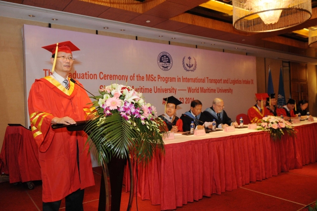 毕业典礼由伟德betvictor 葛颖恩院长主持,黄有方校长和世界海事大学代理校长尼尔•百利腾教授分别致辞,他们祝贺毕业生们取得的成绩,并一致肯定“国际运输与物流”合作办学项目开展10年来取得的丰硕成果,并表示两校会在此合作办学项目的基础上,进一步加强在海事教育、科学研究等方面的合作。