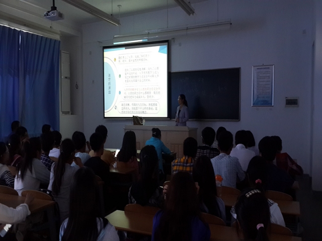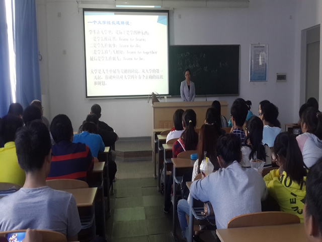 屏幕上简洁大气的幻灯片引出了今天的主题——青春飞扬,梦想远航。对于一个刚刚褪去高考疲倦感的大一新生来说,“青春、大学、生活”正是他们此时此刻既憧憬又困惑的话题。汪老师在讲座中,首先为大家分析了新生迷茫的原因,指出了大家对大学生活理解的几个误区;进而层层深入,指明了近阶段的首要任务:适应。“适应——是终身的任务,是你大学的起点!”汪老师讲到:“大学新生需要适应的,包括环境、人际关系、学习三方面。”拥有多年教学经验的汪老师总结了人际交往的三大法宝:微笑、赞美、聆听;还结合哈佛大学著名的调查案例,倡导大家从大一开始就要有一个明确的、积极的学习目标。最后提问环节,同学们都积极主动的提出了自己在学习和生活上的困惑,请求老师的帮助,汪老师十分耐心地为大家解答,给出了中肯的忠告。
