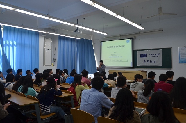 屏幕上简洁大气的幻灯片引出了今天的主题——供应链管理理论与实践。对于专业为交通运输同学们的来说,“供应链管理思想”正是他们此时此刻既憧憬又困惑的话题。高老师在讲座中,首先为大家分析了供应链的概念,并指出了大家对供应链理解的几个误区;进而层层深入,指明了供应链物流系统:原材料供应商到消费者之间的物流系统。高老师举例到:“Sears 的供应链物流系统和Benetton 的供应链物流系统”拥有多年教学经验的高老师总结了供应链管理思想的四大法宝:减少前导时间、整合供应链、增加成本收益、多元化经营;还结合利丰集团的供应链管理案例,告诉大家“为每一个订单打造一条最优的供应链”。最后提问环节,同学们都积极主动的提出了自己对供应链管理思想的困惑,请求老师的帮助,高老师十分耐心地为大家解答,给出了中肯的答案。