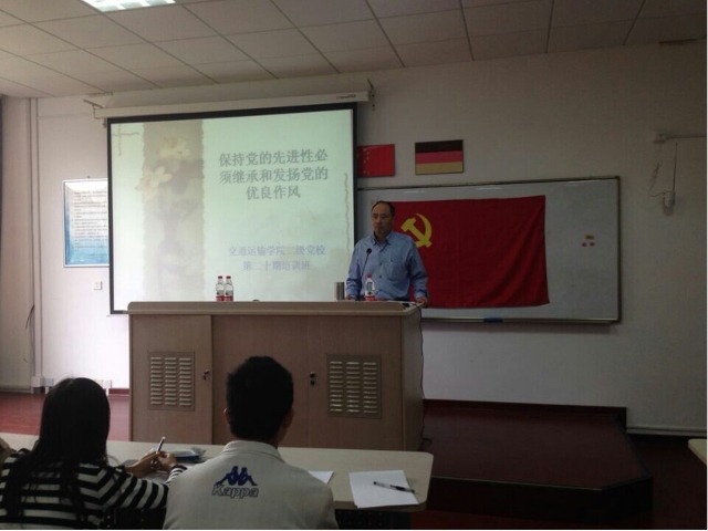 2014年10月29日下午13:30,伟德betvictor 第二十期二级党校培训班在交运伟德betvictor 楼115室开始了第三次课程。本次课程由两部分组成,第一部分:伟德betvictor 党委书记冯晨曦老师作关于《继承、保持和发扬党的优良作风》的主题报告。第二部分:分组讨论。全体学员分成三个小组,分别由冯晨曦老师、赵睿老师、郝海光老师组织进行“通过学习,结合讲座,谈谈你有何新的认识?谈如何在大学生活中发挥积极分子的模范带头作用?”的讨论活动。