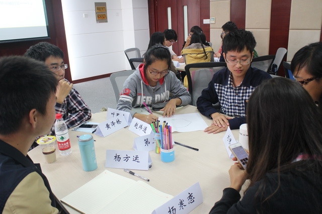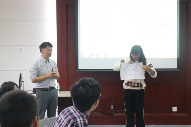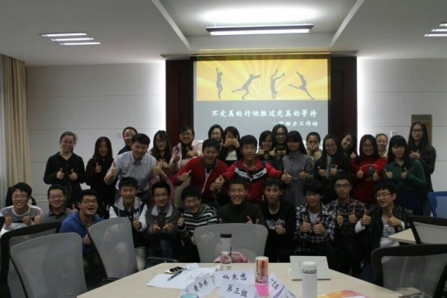 刘建老师将课程分为建立团队学习小组、换框与行为准则、强有力的自我提问、目标设定、激励与挑战五个方面,并通过分组讨论合作的方式让每一个同学融入到培训当中。刘老师在第一节课上就建立团队学习小组,并让同学们设计队名、口号和团队象征来增进各小组的了解,增强团队合作能力。在换框与行为准则中,刘老师先给同学们介绍了几种经典换框法,并以生动的例子展示给大家。而后,同学们尝试使用不同的换框法来摆脱自己生活中的忧虑,学习如何积极面对生活中的不如意。在强有力的自我提问中,刘老师用生活中十分普遍的事例诠释了提问是一门艺术,教会了同学们如何提问方可达到理想的效果,更有助与人际交往和自我反思。在目标设定中,刘老师通过他与学生的教练让同学们明白了目标设定的重要性,目标设定的具体与否对目标的影响。让同学们学会制定自己的目标,付出自己的行动,并坚持下去。在最后一堂课上,刘老师通过让同学们制作平衡轮来使同学们更了解自己的现状及应努力的方向,并让同学们写下自己未来三个月要为自己、为家人、为团队所挑战的三件事,将本次培训的精神“行动力”付诸于实践。培训结束后,刘建老师激励同学们勇于面对挑战,并与参加培训的同学们合影留念,为本次课程画上了句号。