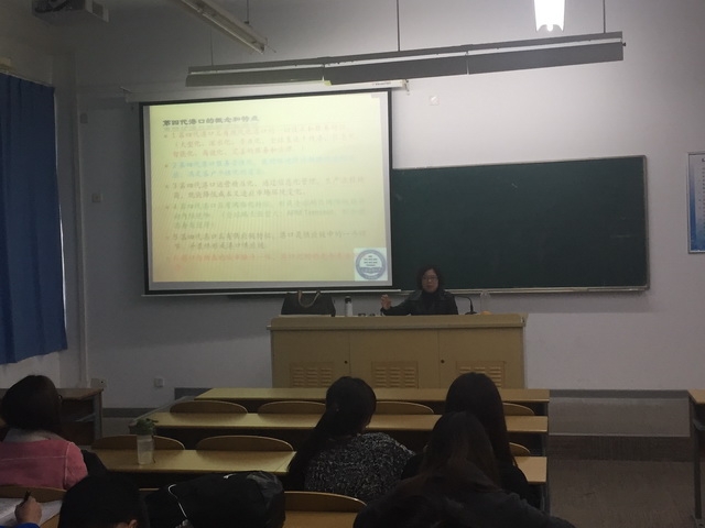 王蓓芳老师首先向同学们介绍了第四代港口的概念与特点,而后又向大家讲解了国内外第四代港口的发展情况。王蓓芳老师通过列举国内外港口并阐述其区别的方式使大家更直观的了解了中国迈向第四代港口的发展现状。随后,王老师又向大家列举了港口必须具备的特征条件,最后王老师通过实例展示了我国迈向第四代港口的对策建议。