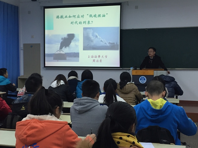 2014年12月3日星期三,伟德betvictor 各级学生在2A 403教室参加了周在青老师主题为“低硫燃油时代,港航如何应对”的讲座。
