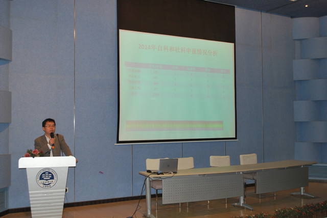 首先我院冯晨曦书记宣读科技工作突出教师名单和成绩,随后葛颖恩院长做关于《2014-2016年科研发展目标及今年实现的新突破》的报告,接着科技处副处长张丽娟老师从学科建设的角度肯定了我院2014年科技工作的成绩,科技处项目科科长郑爱兵老师提出了2015年国家级项目申报工作的建议,最后我院2014年自然科学基金获得资助者陈继红老师分享了成功申报的经验,在座老师受益颇丰。