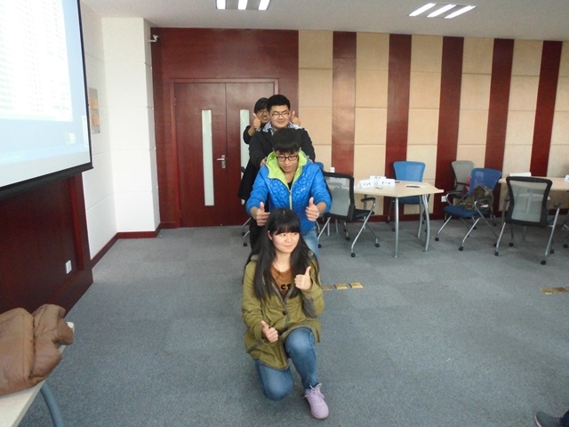 王树江老师将课程分为“舞动热身”、“敞开心扉”、“自我答题”、“小组分享”、“共同聆听”、“总结”几个部分,并通过分组讨论合作的方式让每一个同学融入到培训当中,也给每一位同学上台展示自己的机会。王老师在第一节课上就鼓励大家舞动起来,用自己的肢体语言传达内心的感受,并让每个同学都成为领舞者,其他同学跟着他的舞步一起舞蹈,还让同学们设计队名、口号和专属于自己团队的舞蹈来增进各小组、各成员之间的了解,并向大家展示,锻炼了同学们敢于展现自我的勇气。在第一次课程中,王老师先给同学们每人发了一张问卷“天生我才”,包括最欣赏自己的外表、性格、态度、经验等。让同学们思考到了一些不曾想到过的自己身上的闪光点并与大家分享,在喜悦中老师带领同学们回顾了当天的课程并请大家想出最欣赏自己的一个词用肢体语言展示出来。第二次课程依然是以敞开心扉的舞动开始,此次王老师教会了同学们“情绪遥控器”的使用。通过分类,找错误,找积极的理由来帮助大家拜托负面情绪的困扰,来摆脱自己生活中的忧虑,积极面对生活中的不如意。随后,每个人写出了自己的压力来源,并形象的用大圈小圈来表示。通过肢体表达、呐喊,同学们感受到了自己把压力摆脱的力量,并用绘画形式展现出来,同时送给自己一句话来鼓励自己。在最后一次课程中,王老师通过“时间馅饼”让同学们明确了自己目前存在的不足,让同学们画出十年后的自己。让同学们坐成一个圆圈,分享自己的感受。在教室的对角线上,同学们一一与自己展示了想对自己的过去说的话,有的表达感激,有的想要忘记。最后,每个人解释了自己第一节课上肢体所表达的最欣赏自己的优点是什么和对未来的憧憬。培训结束后,王老师真诚的希望参加本次工作坊的同学们能够保持良好的关系, 并与参加培训的同学们合影留念,为本次课程画上了句号。