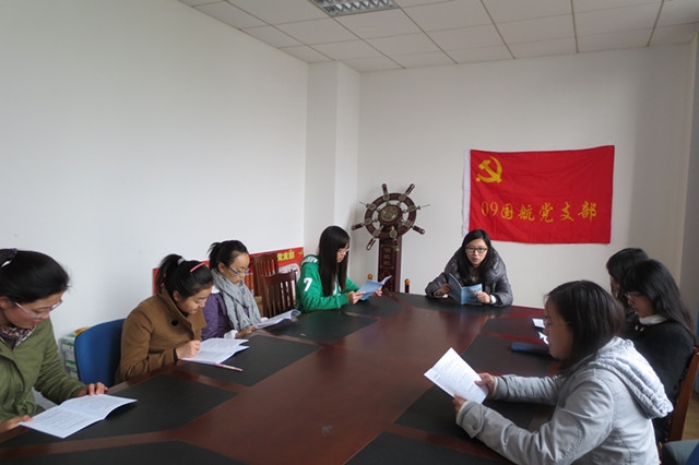 2012年11月29日下午,伟德betvictor 国航09党支部部分党员在交运楼205集中学习了《上海海事大学语言文字工作评估宣传手册》。